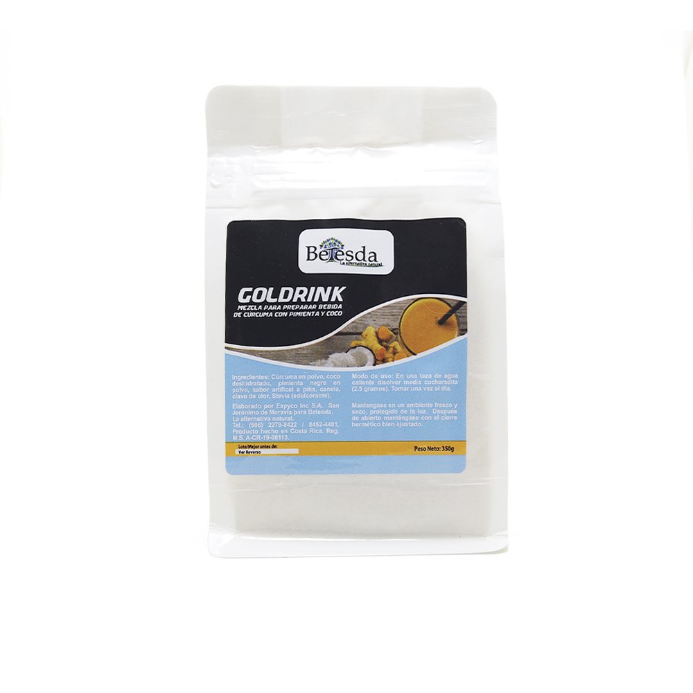Goldrink contiene Cúrcuma, Coco y Pimienta negra. La curcumina, sustancia activa de la cúrcuma es lipofilica, es decir se adhiere a las moléculas de grasa, el coco facilita el paso de la cúrcuma del intestino a la sangre, una vez en la sangre es transportada por la ven porta hasta el hígado es aquí donde su tercer ingrediente activo la piperina de la pimienta negra induce a un mayor aprovechamiento de la cúrcuma.